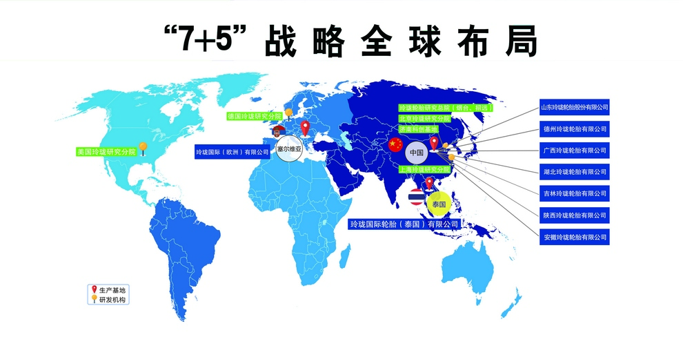 玲瓏集團產、學、研一體推進,在全球擁有7個研發機構(招遠、煙臺、濟南、上海、北京、北美、德國)、7個生產基地(招遠、德州、柳州、湖北、長春、泰國、塞爾維亞)。與實力高校聯合、與行業專家攜手、與世界500強企業合作,創新營銷渠道和合作方式,玲瓏入圍“全球十大最具價值輪胎品牌”榜,全球十大車企七家選玲瓏輪胎,品牌價值列國內輪胎企業首位。曾獲得國家科技進步二等獎、國家技術發明二等獎、泰山品質認證、山東省省長質量獎等多項殊榮。